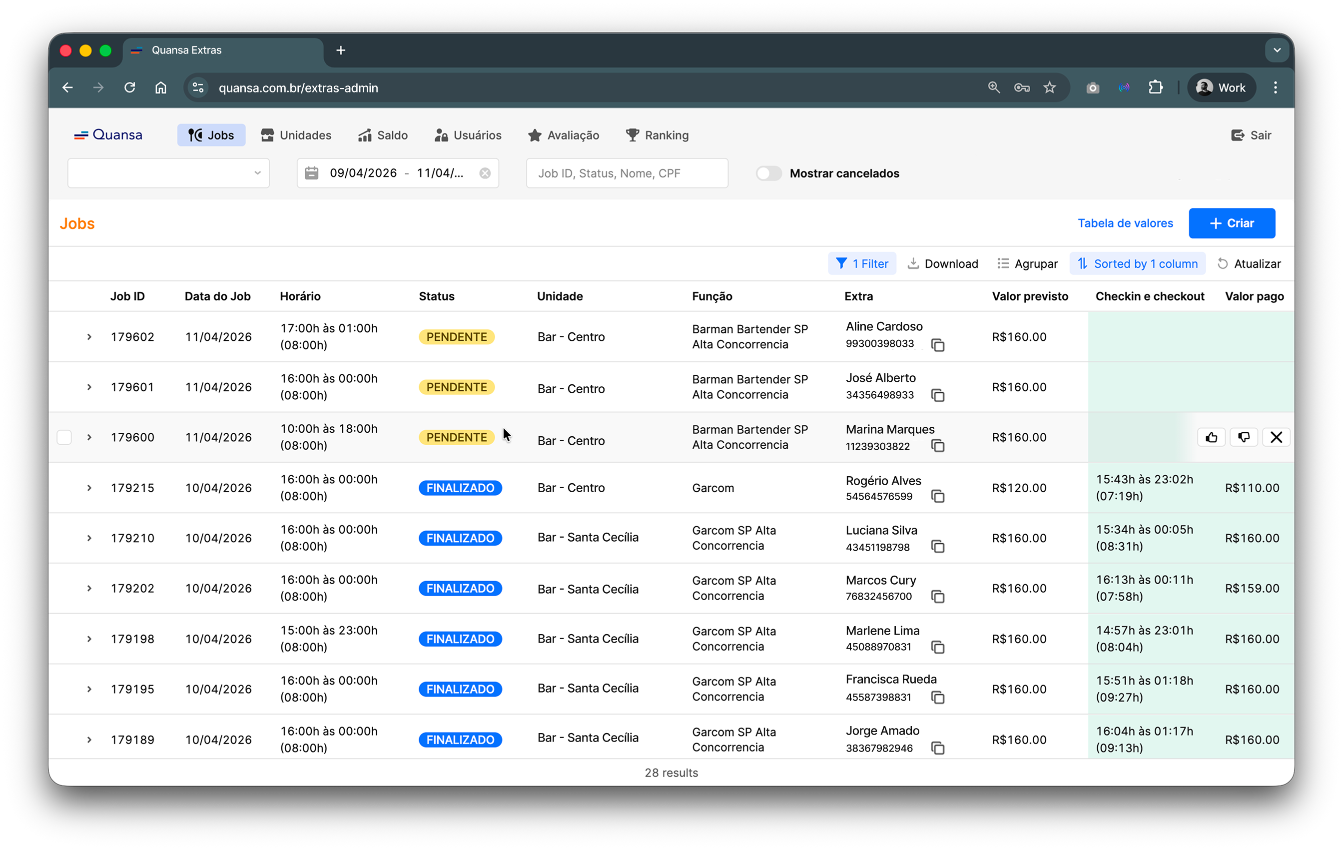O uso da Quansa para gestão de extras nos trouxe mais segurança na operação com a mitigação de fraudes, mais rastreabilidade na realização dos jobs, melhor gestão do caixa e um fee competitivo. O time da Quansa é super parceiro para entender os problemas e desafios do negócio, desenvolvendo soluções sob medida.